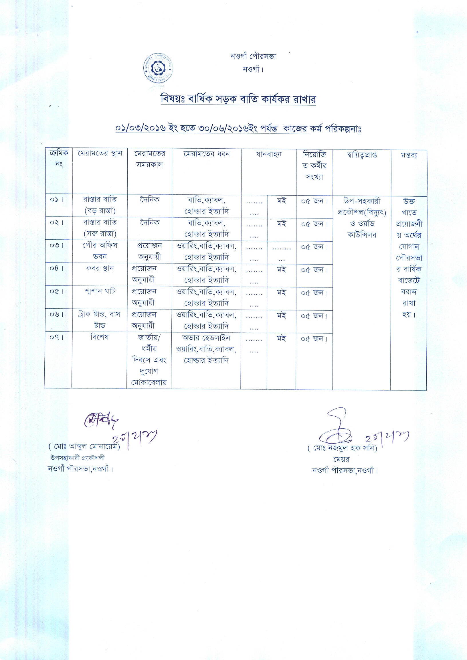 ঠিকানা : নওগাঁ পৌরসভা,নওগাঁ